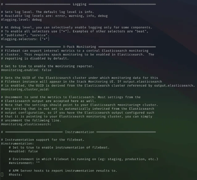 - elasticsearch.hosts: [“http://localhost:9200″]
