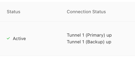 문제 없이 설정완료가 되면, 아래 이미지와 같이 Tunnel(Primary), Tunnel(Backup) UP 상태가 됩니다.