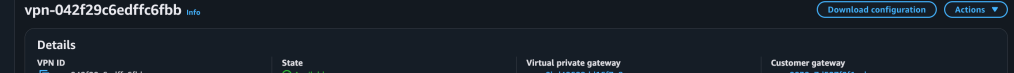 앞서 만들었던 AWS Site-to-Site VPN을 만들고 나면 해당 VPN에 Configuration을 다운 받을 수 있는데 Generic으로 다운을 받고 나면 안쪽에 설정값들이 나옵니다.