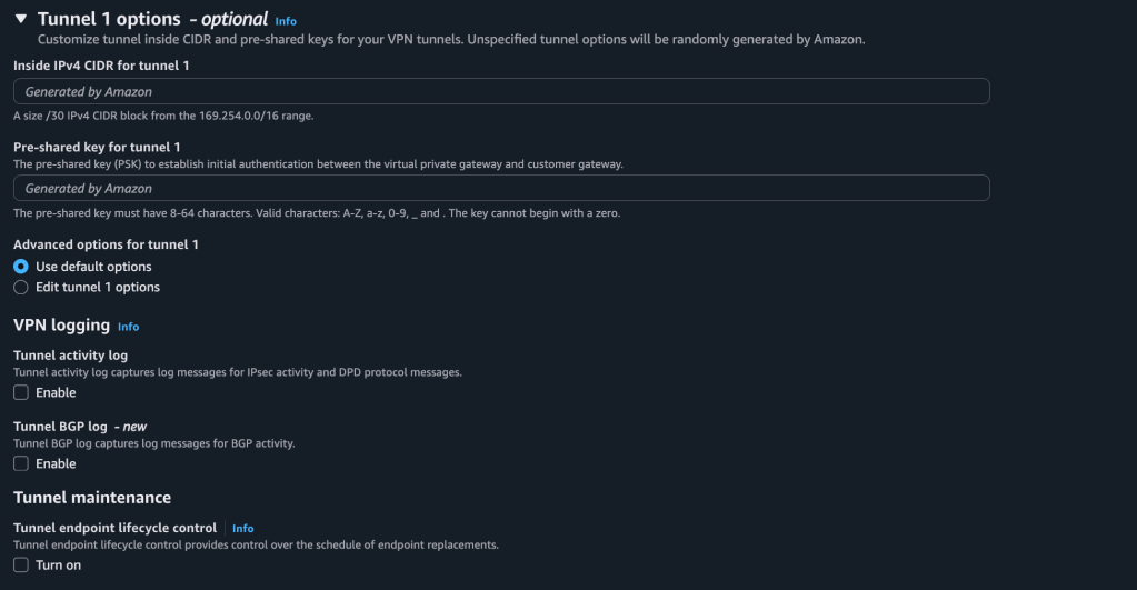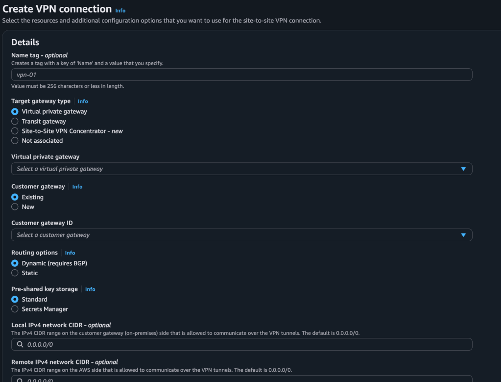 • Routing Options : BGP를 요구한다면 Dynamic, 아니면 Static 으로 설정해도 상관없다.