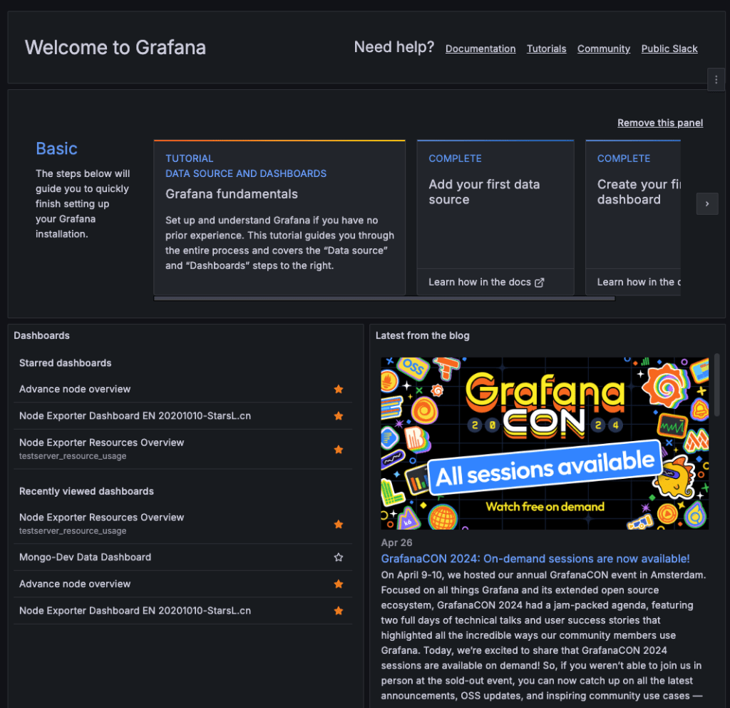 이렇게 Grafana에 접속한 후,