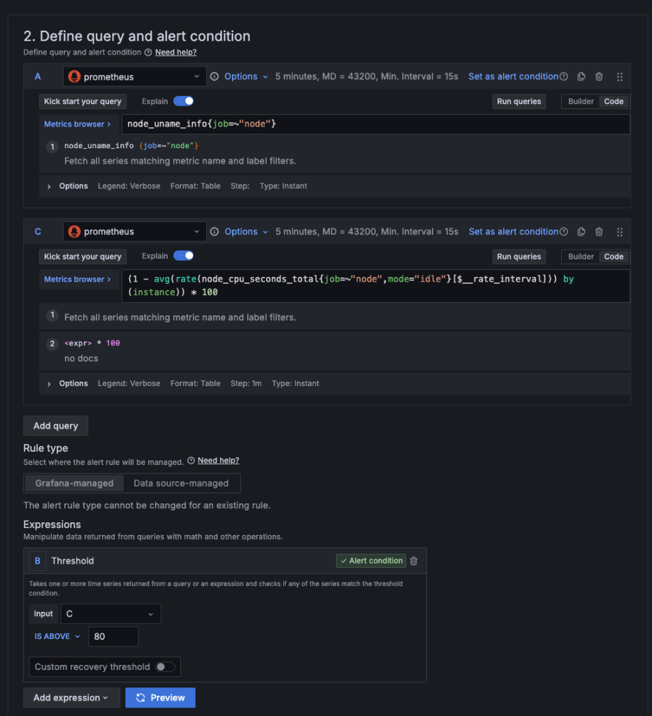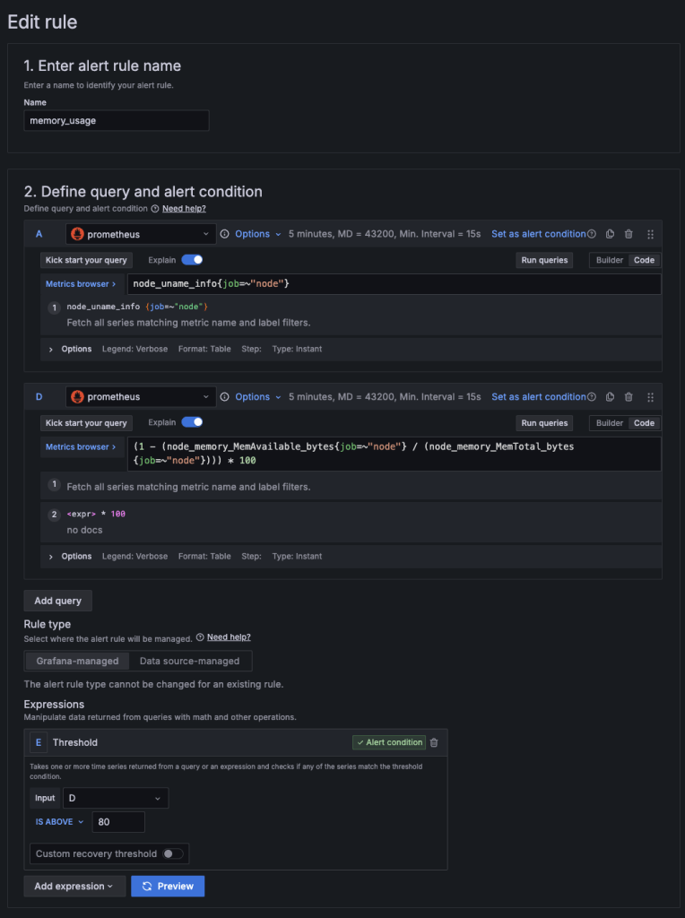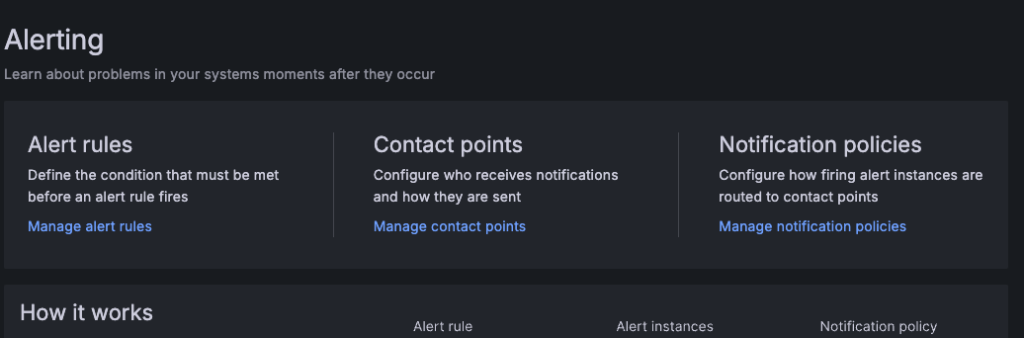 alerting에 3가지가 나오는데, 먼저 alert rules를 작성해야 한다.