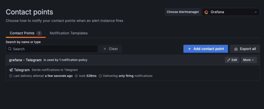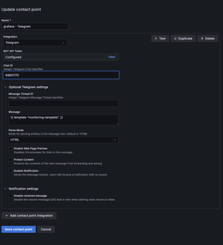 contact Points 에서 Telegram 사용