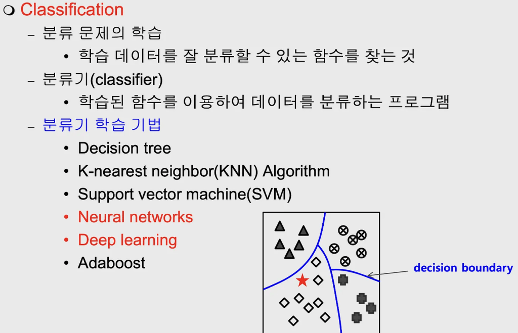 - 데이터를 여러 가지 class로 분류함